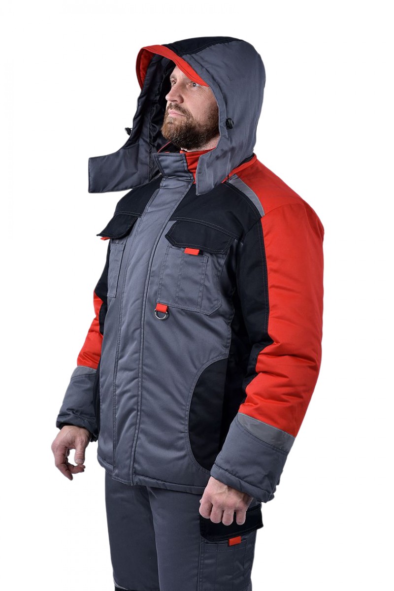 ➠ Куртка прямая с притачной утеплённой подкладкой, центральной застёжкой молнией, ветрозащитным клапаном, накладными и прорезными многофункциональными карманами. Воротник-стойка с внутренней стороны на флисе, фигурные светоотражающие полосы по кокетке.